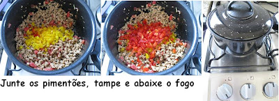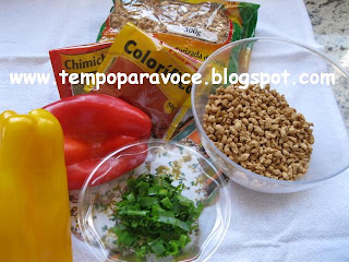 Enquanto isso, limpe os pimentões, tire aquela pelinha branca de dentro e pique-os bem picadinho